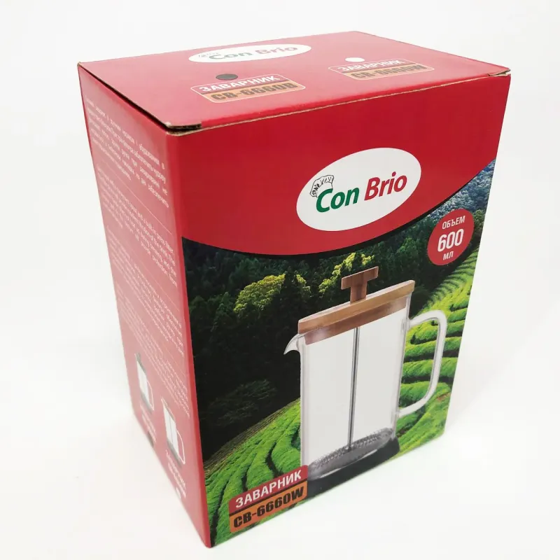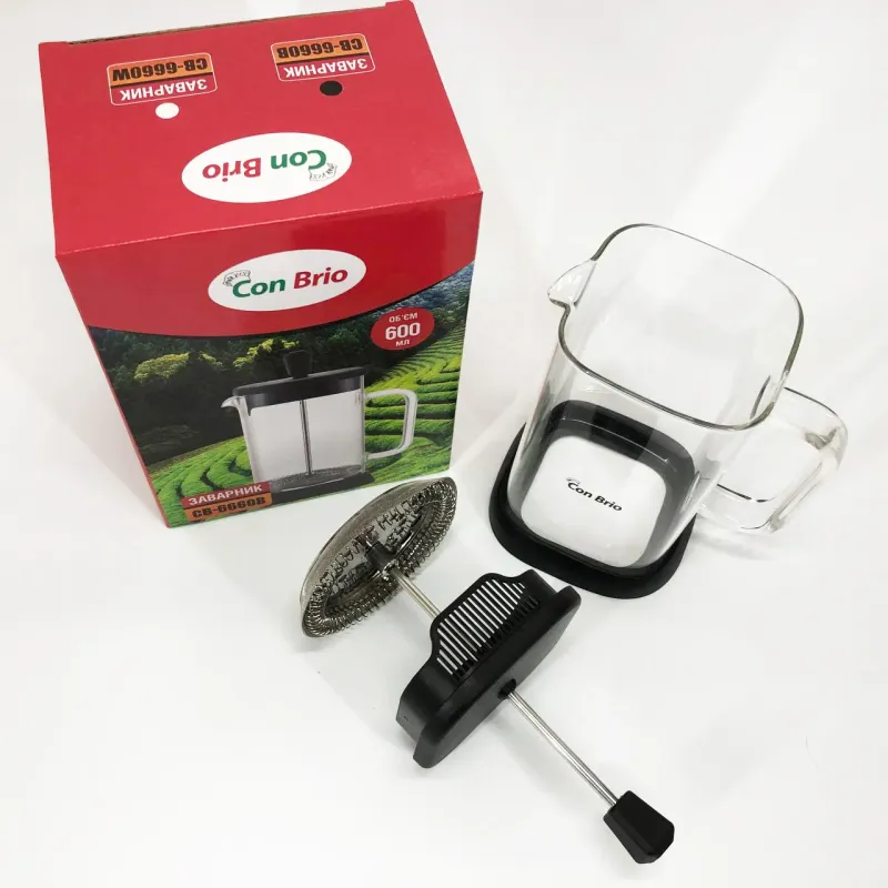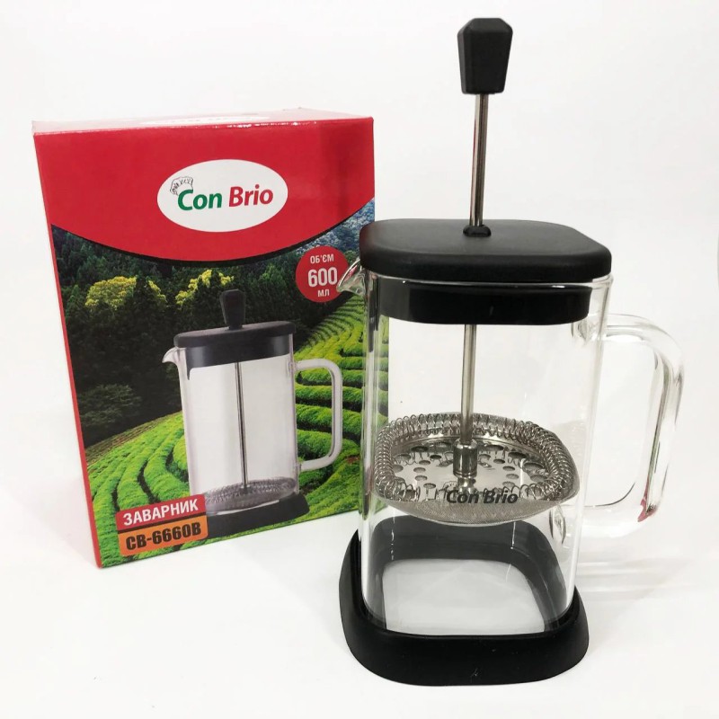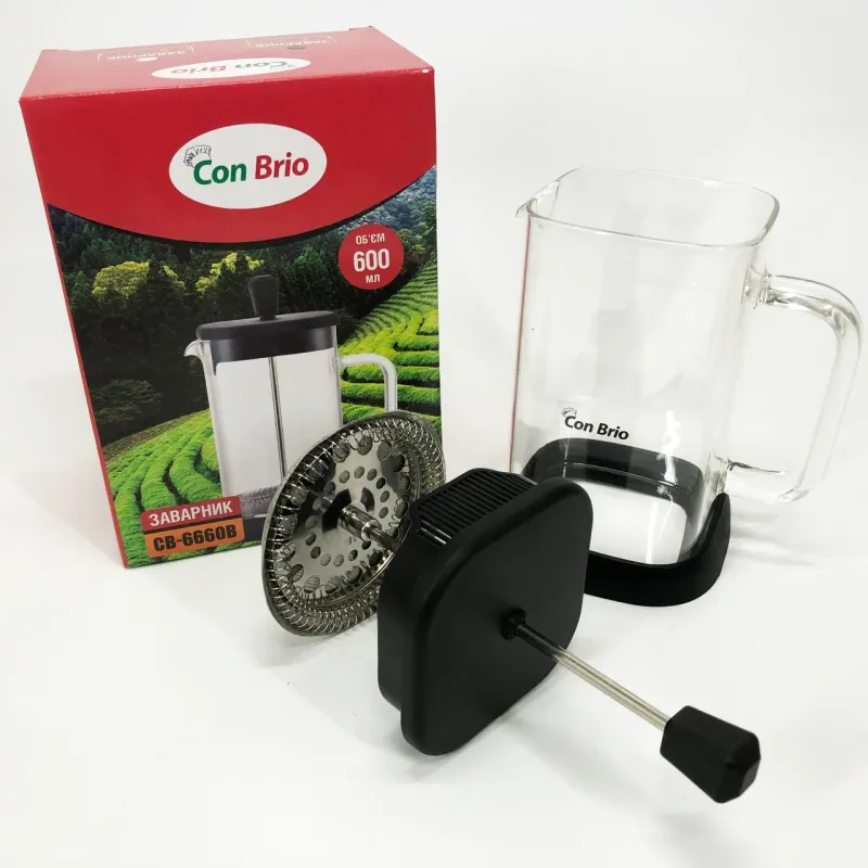 Френч-пресс Con Brio — це оптимальне рішення для приготування заварного чаю методом відстаювання, яке поєднує в собі функціональність і естетику. Він допоможе швидко і зручно отримати насичений ароматний напій вдома або на роботі, водночас підкреслюючи стильний дизайн кухонного простору.
