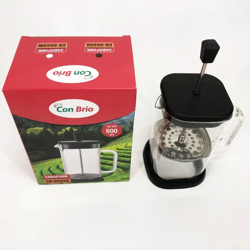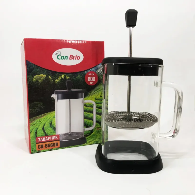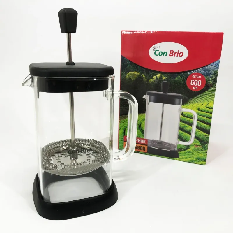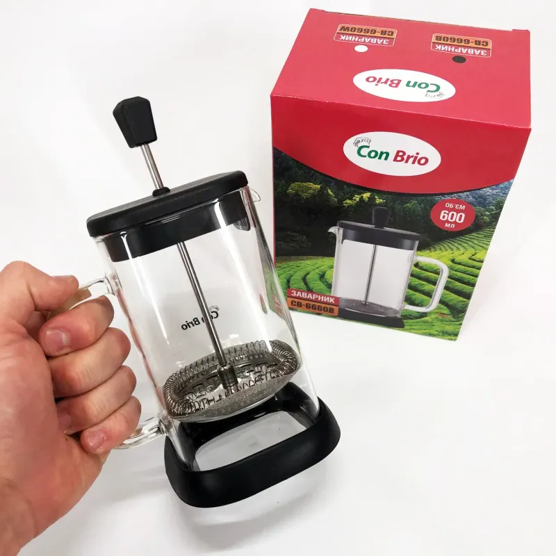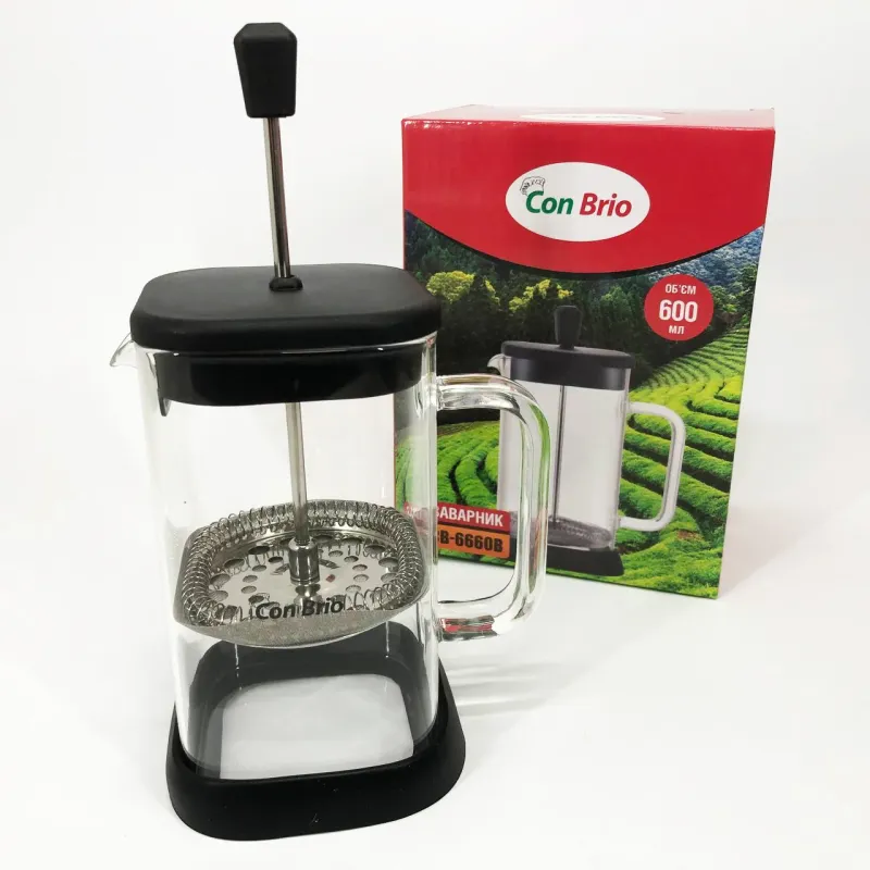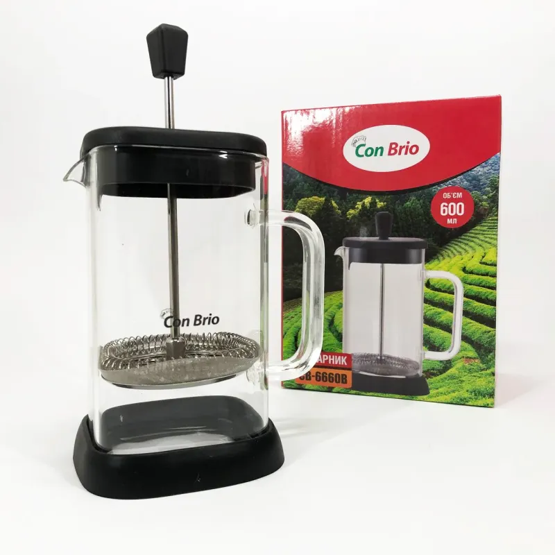 Френч-пресс Con Brio 600 мл CB-6660B, Френч-пресс для крепкого кофе, Многоразовый френч-пресс