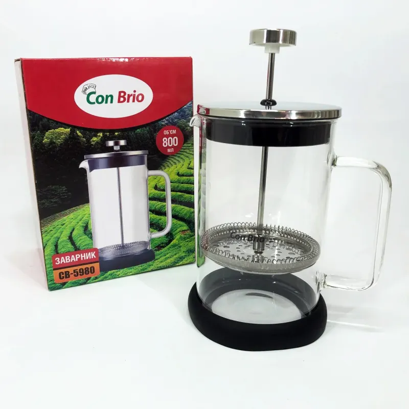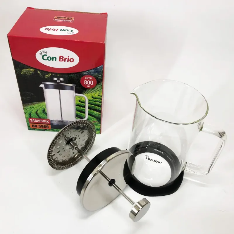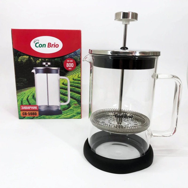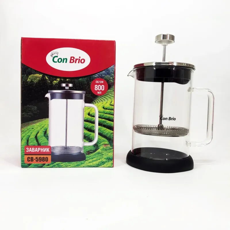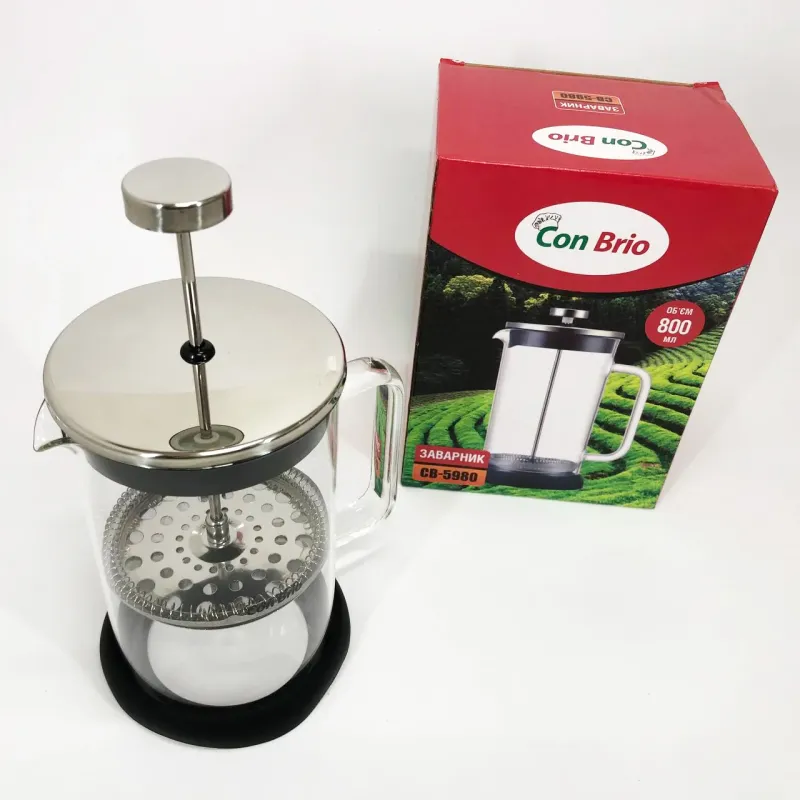Френч-пресс Con Brio CB-5980 800 мл, Чайник для заваривания трав, Заварник прозрачный