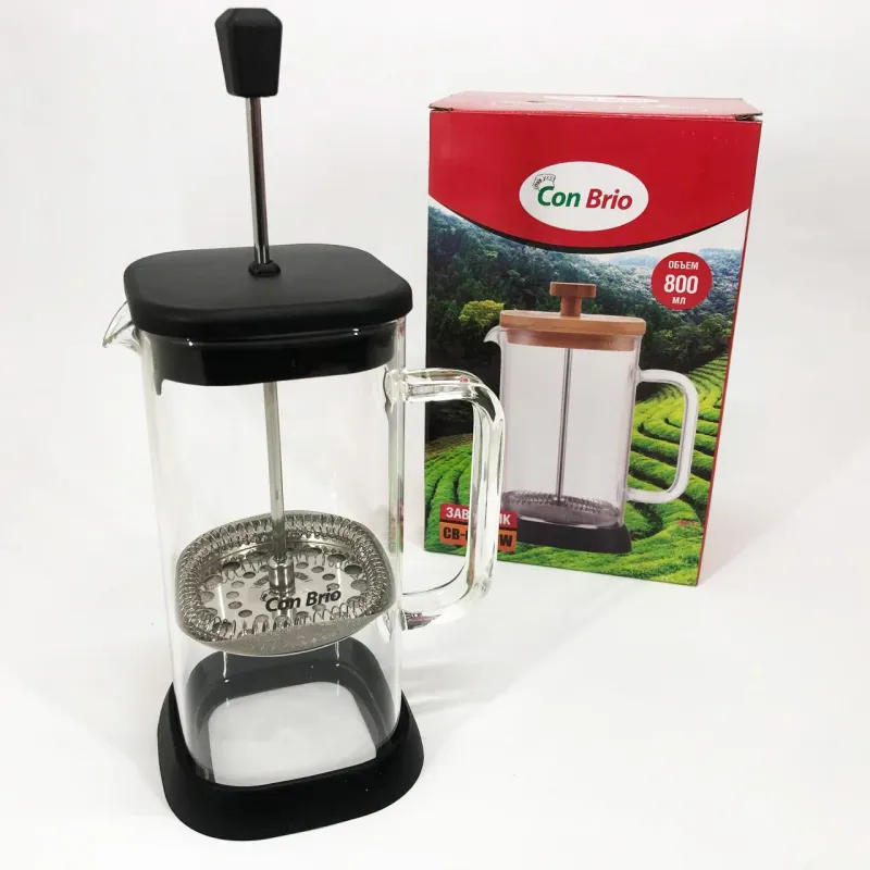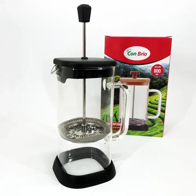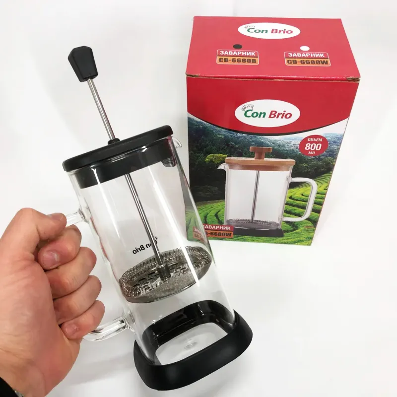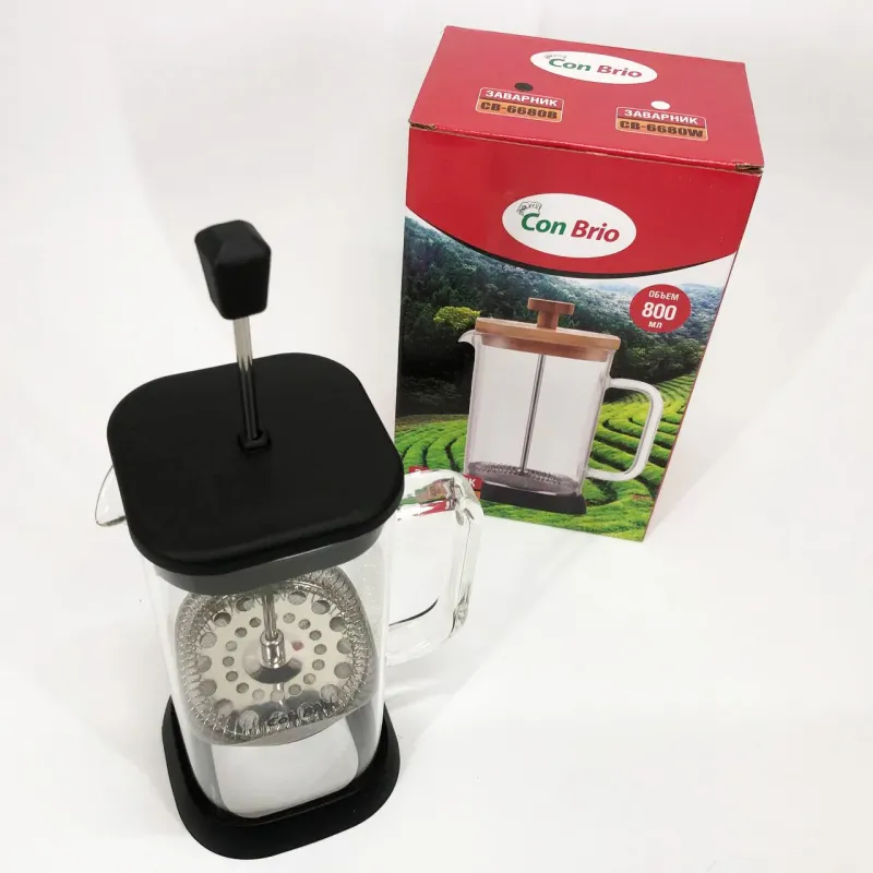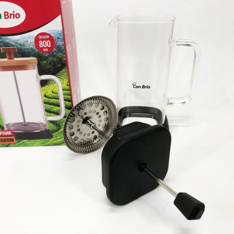 Френч-пресс Con Brio 800 мл 6680-СВ-B – це продуманий інструмент для швидкого та зручного приготування кави або чаю з максимальною користю для здоров’я та комфорту. Завдяки поєднанню термостійкого скла та елементів із практичного пластику та силікону, ця модель зберігає температуру напою та забезпечує легкість у щоденному використанні. Об’єм 800 мл дозволяє пригостити кількох людей одночасно або насолодитися великою порцією улюбленого напою без повторного приготування.