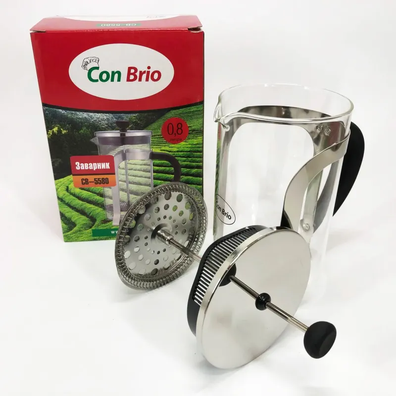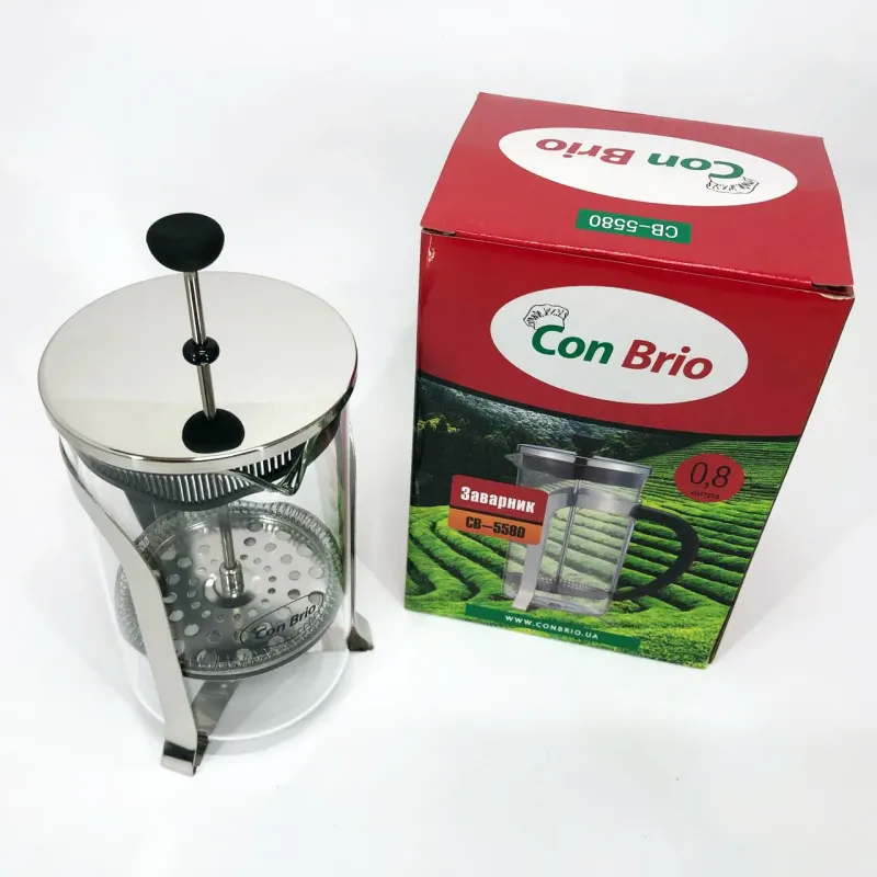Френч-пресс Con Brio CB-5580 0.8 л, Стильный стеклянный заварочный чайник, Заварной стеклянный чайник