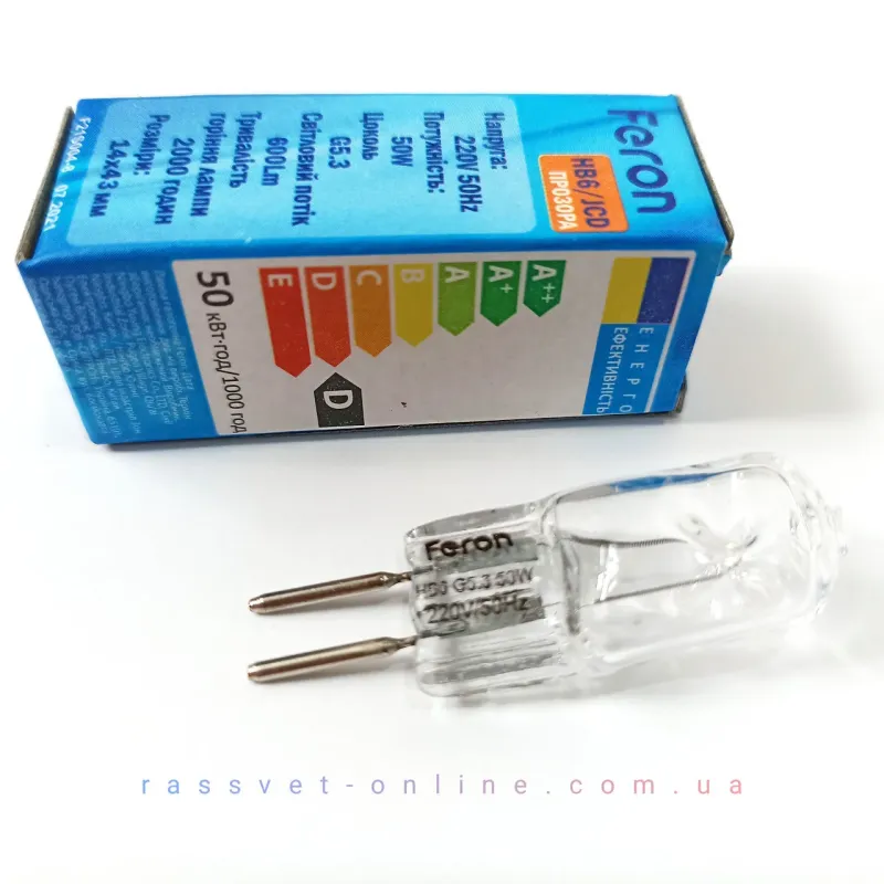 Замовте галогенну лампу Feron G5.3 50W прямо зараз та забезпечте безперебійну роботу вашого солянoго світильника!