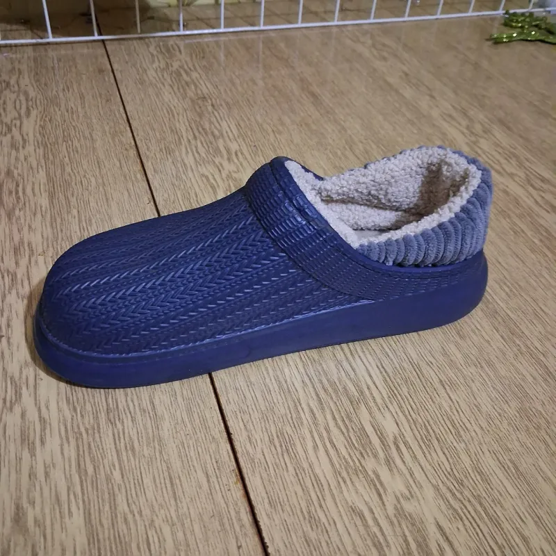 Шукаєте універсальне взуття, в якому буде тепло і в хаті, і на подвір'ї? Наші утеплені жіночі сабо у глибокому синьому кольорі — це саме те, що потрібно. Модель виконана з сучасного матеріалу ЕВА (піна), який славиться своєю легкістю та вологостійкістю. Завдяки цьому ваші ноги будуть захищені від вологи та бруду. Родзинка моделі — стильна фактурна поверхня "в ялинку", яка не тільки гарно виглядає, але й робить взуття більш стійким до подряпин та зносу. Всередині галоші утеплені густим та м'яким штучним хутром білого кольору ("баранчик"), яке чудово зберігає тепло та дарує відчуття затишку. Це взуття дуже просте у догляді: зовнішня поверхня легко миється водою, а матеріал швидко сохне. Сабо мають зручну колодку та легку підошву, тому ноги не втомлюються навіть при тривалому носінні. Ідеальний варіант для дачі, саду або приватного сектору. Характеристики: Матеріал верху: Піна ЕВА (EVA) — водонепроникна Матеріал утеплювача: Штучне хутро (тепле, біле) Фактура: Рельєфна (ялинка/зигзаг) Колір: Синій (Navy) Тип: Закриті (сабо/галоші) Розміри: 36-41 Сезон: Осінь/Зима/Весна Країна виробник: Україна / Фабричний Китай
