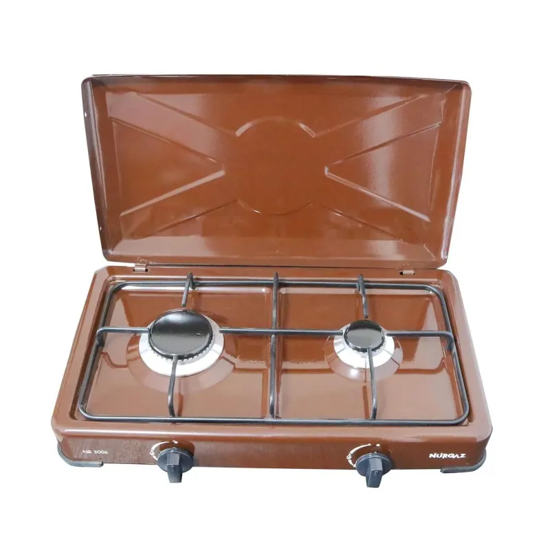 Теги: газова плита, настільна плита, 2-х конфоркова, Nurgaz, кухонна техніка, плити на газ, коричневий колір
