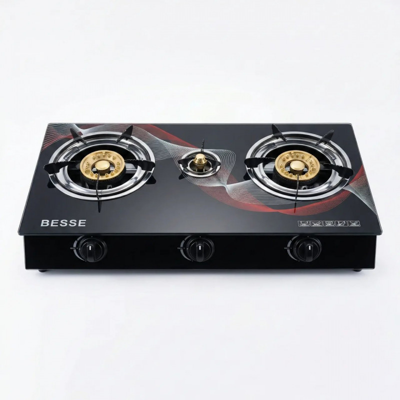 Готуйте як шеф-кухар навіть на дачі чи в заміському будинку з функціональною настільною газовою плитою BESSE на 3 конфорки. Ця модель поєднує в собі преміальний дизайн та високу продуктивність. Робоча поверхня виконана з жароміцного загартованого скла товщиною 7-8 мм, яке не тільки стильно виглядає завдяки червоно-білому візерунку, але й дуже легко миється від жиру. Головна перевага цієї моделі — наявність трьох конфорок. Дві великі потужні конфорки з боків ідеально підходять для приготування основних страв у великому посуді, а центральна маленька конфорка — незамінна для варки кави в турці або розігріву дитячого харчування з мінімальною витратою газу. Пальники мають латунне покриття ("золоті"), що гарантує довгий термін служби та стійкість до високих температур. Плита оснащена зручною системою п'єзопідпалу, вбудованою в поворотні перемикачі, що дозволяє забути про сірники. Міцний металевий корпус та надійні ніжки забезпечують стійкість на будь-якій поверхні. Працює від балонного газу (LPG), підключення через штуцер "ялинка" розташоване позаду. Характеристики: Тип: Настільна газова плита Кількість конфорок: 3 (2 стандартні + 1 економічна) Матеріал поверхні: Загартоване скло (Tempered Glass) Тип пальників: Латунь (стійкі до вигорання) Управління: Поворотні перемикачі з п'єзопідпалом Призначення: Під скраплений газ (балон) Колір: Чорний з абстрактним малюнком Виробник: BESSE