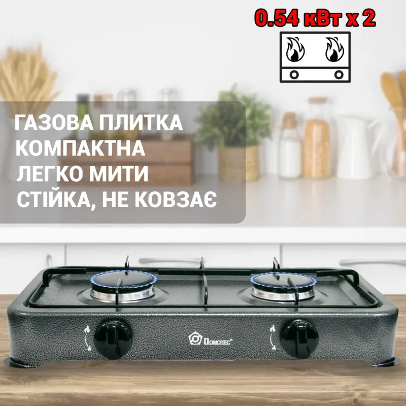 Газова плита настільна Domotec MS-6662 на 2 конфорки. Економний таганок для дачі під балон