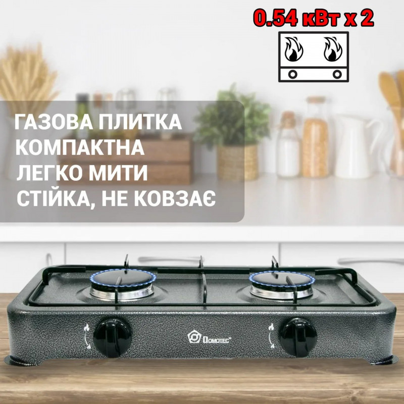 Газова плита настільна Domotec MS-6662 на 2 конфорки. Економний таганок для дачі під балон