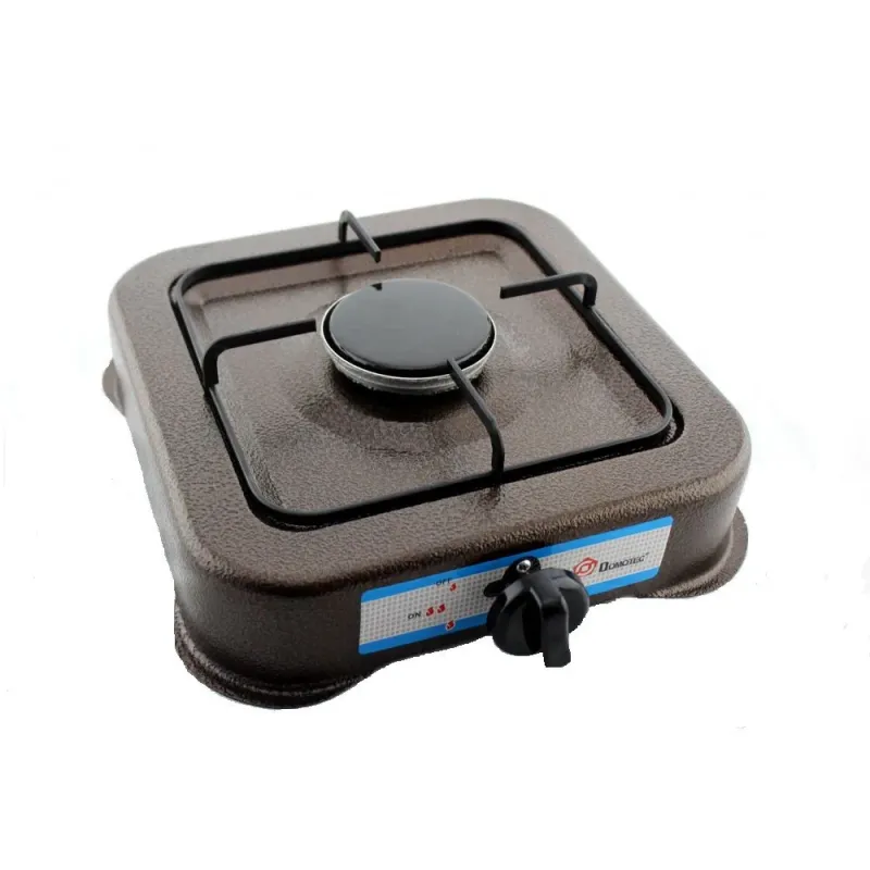 Газова плита настільна 1 конфорка Domotec. Коричневий емальований таганок для дачі