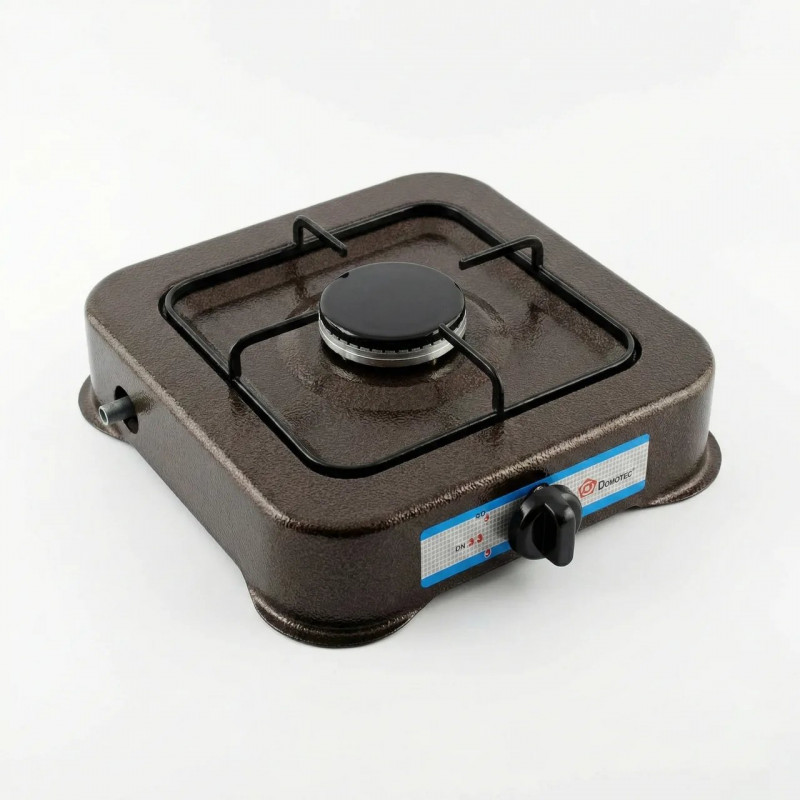 Газова плита настільна 1 конфорка Domotec. Коричневий емальований таганок для дачі