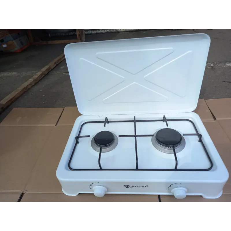 Теги: газова плита, настільна плита, плита 2 конфорки, Yücel, таганок під балон, білий емальований, турецька техніка