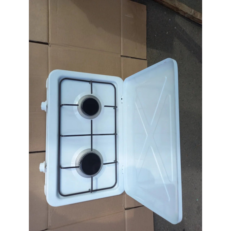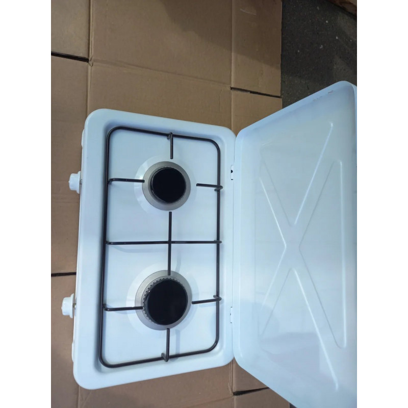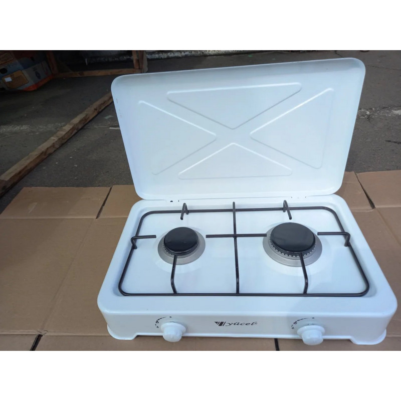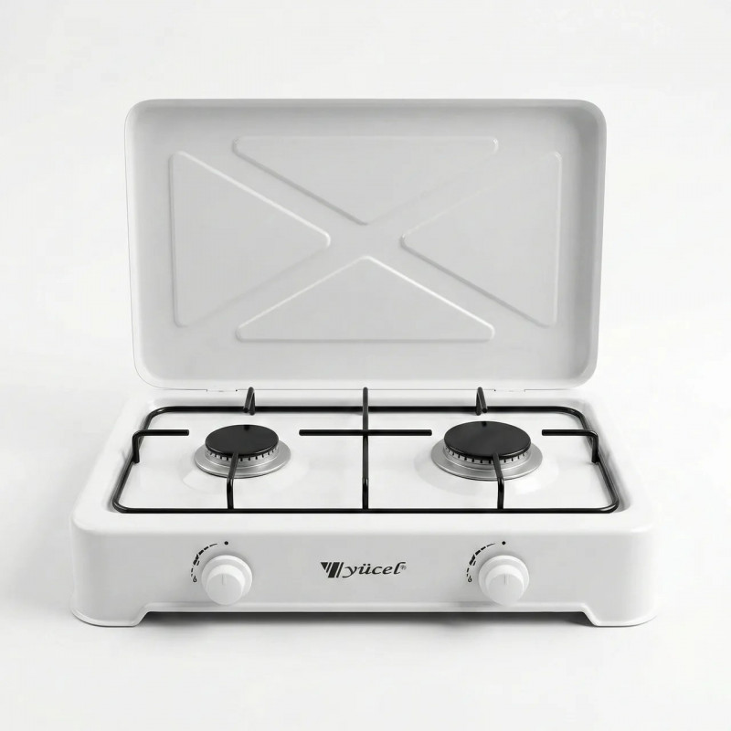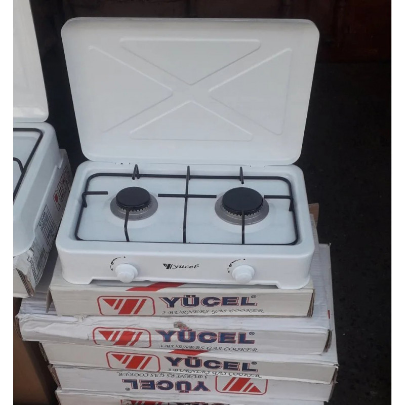 Теги: газова плита, настільна плита, плита 2 конфорки, Yücel, таганок під балон, білий емальований, турецька техніка