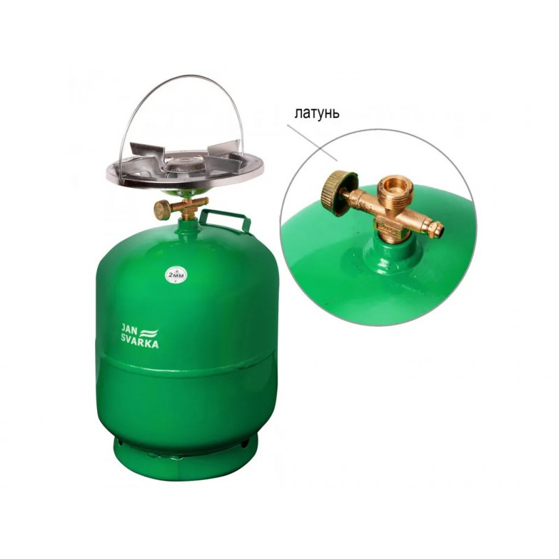 Об'єм 12 літрів забезпечує до 8-10 годин безперервної роботи — вистачить на весь похід або дачний сезон. Латунні пальники в комплекті ідеально підходять до балона, стійкі до корозії та служать роками. Ви отримуєте готове рішення «все в одному» — розпакував і користуйся.