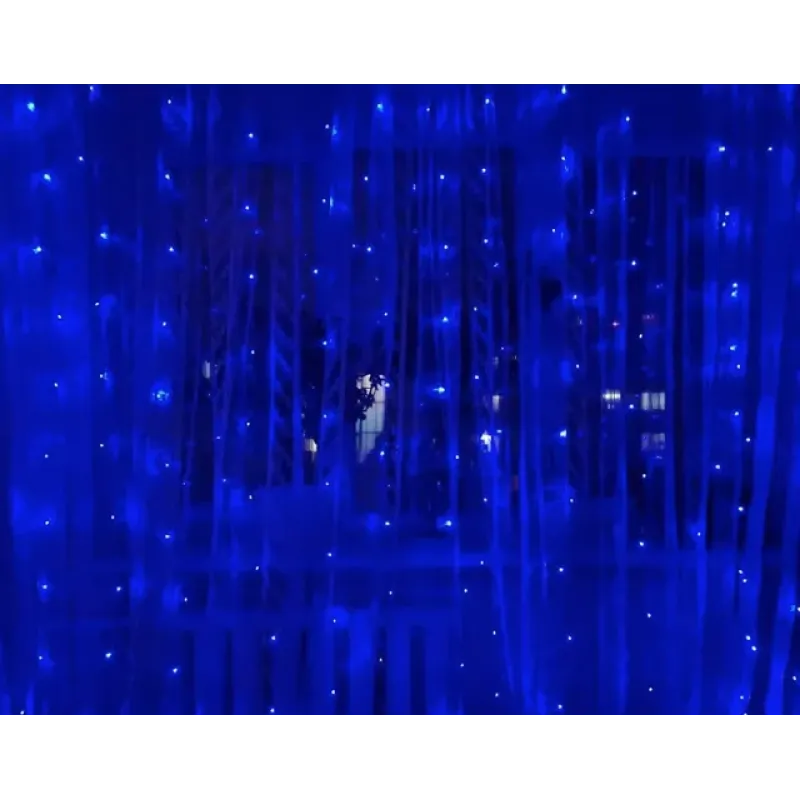 Гірлянда-штора 300 led B-9 Синя 3M*3M на мідному дроті+сполуч.