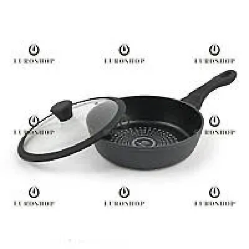 Глибока сковорідка Benson BN-450 – ідеальний вибір для тушкування та змаження. З діаметром 28 см і об’ємом 3,7 л, ця сковорідка забезпечує простір для приготування великих порцій. Виготовлена з алюмінію з алмазним антипригарним покриттям, вона поєднує міцність, екологічність та стильний дизайн.