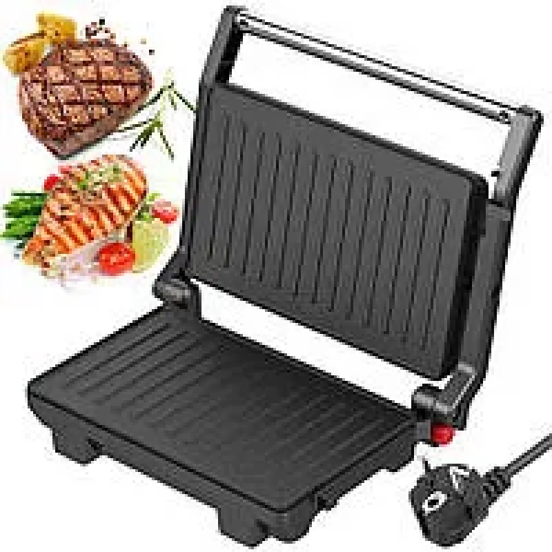 Гриль контактний DOMOTEC MS-7708 Рифлені пластини для рівномірного обсмажування продуктів. За допомогою компактного гриля DOMOTEC MS-7708 ви приготуєте смачні м’ясні стейки, обсмажите овочі або рибу, а також порадуєте гарячих сендвічів домочадців. Під час обсмажування утворюється жир і для того, щоб страви виходили корисними та дієтичними, передбачені спеціальні жолоби для стоку жиру в спеціальний піддон. Рифлені пластини забезпечують рівномірне обсмажування інгредієнтів. Зручний контроль за приготуванням та тепло ізольована ручка для безпечного використання. Нагрівання пластин регулюється плавно, що дає можливість підлаштуватися під кожен продукт. Корпус грилю виготовлений з нержавіючої сталі, а тепло ізольована ручка не вимагає використання прихватки для безпечної експлуатації. Кількість у коробці (шт.) 6 Додаткові дані Відкриття на 180 ° Індикатор готовності Так Індикатор заряджання Так Матеріал корпусу Метал Потужність (Вт) 1000 Ненагрівана ручка Є Рифлена поверхня пластин Живлення 220-240 V – 50-60 Гц Покриття гарячої поверхні. Тип Закритий (двосторонній) Тип керування Механічний Тип установки Настільні