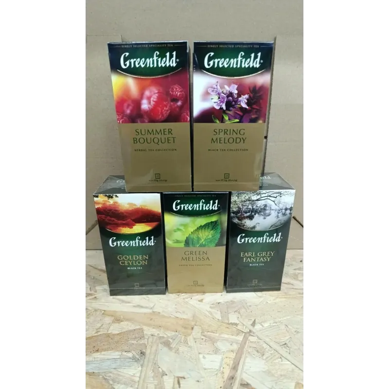 Грінфілд використовує тільки відібране чайне листя, яке проходить ретельний контроль якості. Широкий асортимент дозволяє обрати ідеальний смак для будь-якого настрою — від класичних сортів до екзотичних купажів з фруктовими та квітковими нотами.