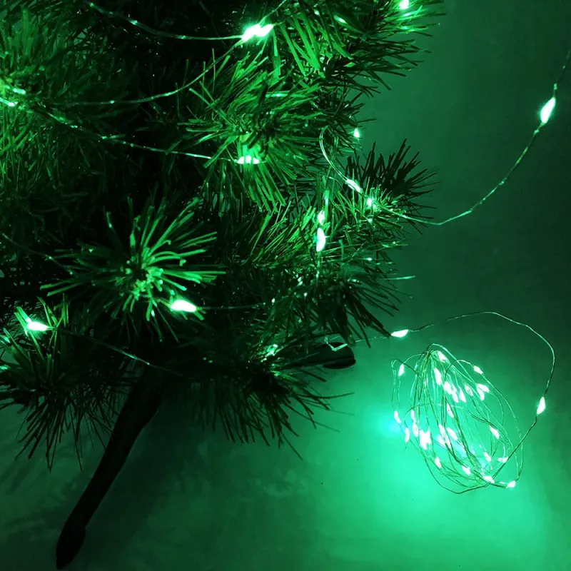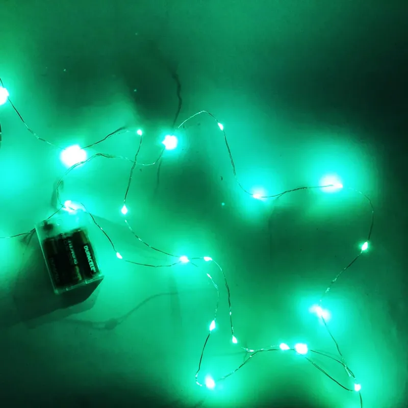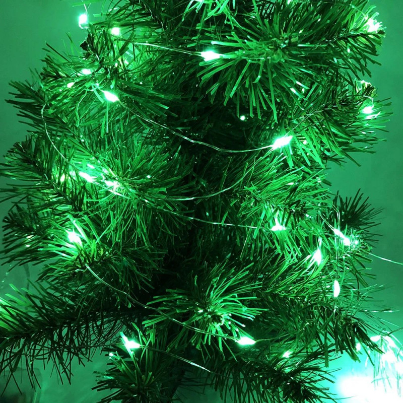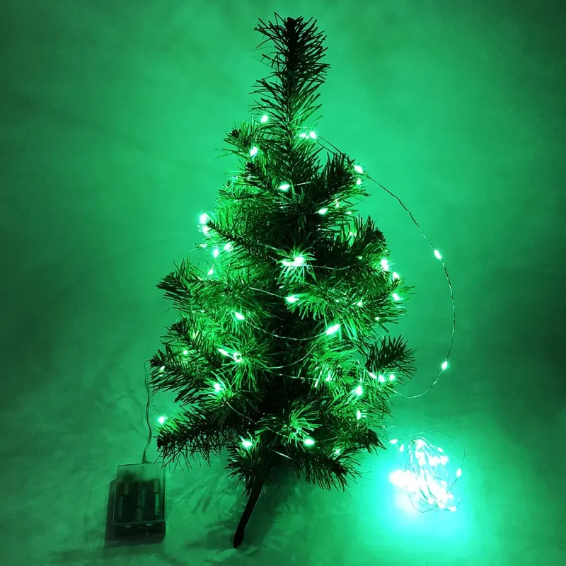 Гирлянда светодиодная роса на батарейках зеленая, провод прозрачный, 5м