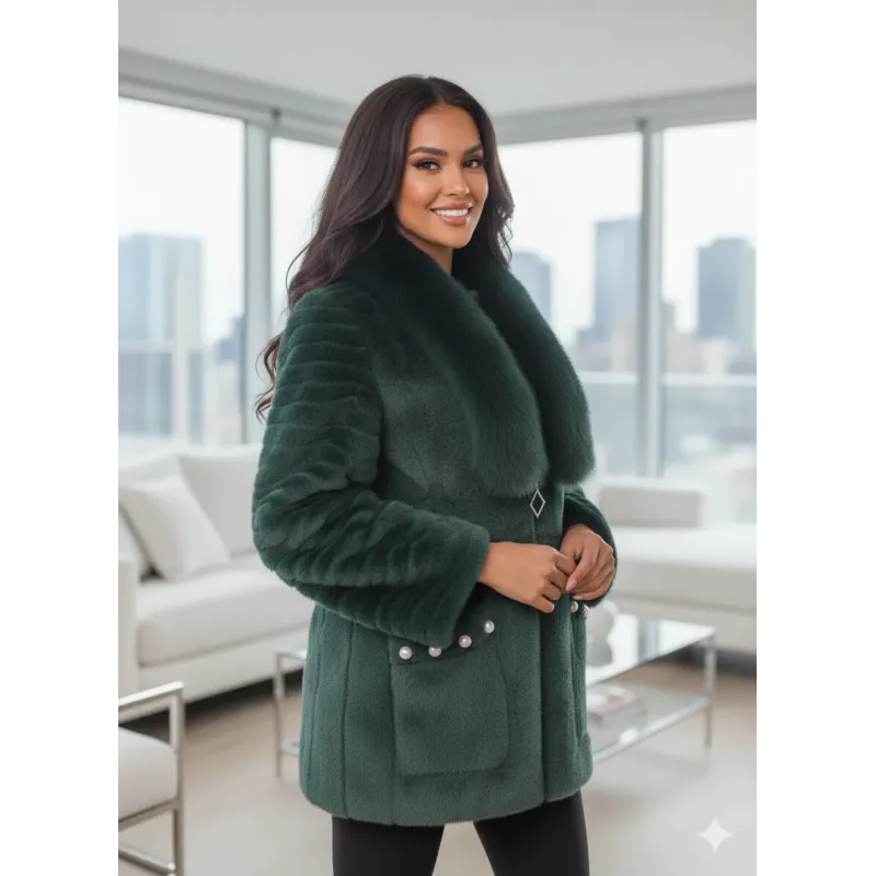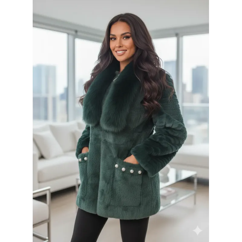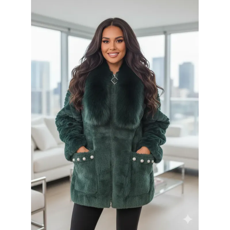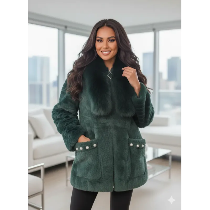 Тепла кофта (кардиган) з еко-хутра у смарагдовому кольорі Опис: Пропонуємо вам неймовірно стильну та затишну утеплену кофту (або кардиган), виготовлену з м'якого, сучасного еко-хутра. Це ідеальна річ для прохолодних вечорів або стильних багатошарових образів! Ключові особливості моделі: Матеріал: Щільне, приємне на дотик еко-хутро, яке забезпечує тепло та комфорт. Дизайн: Прямий крій, що добре комбінується зі штанами, спідницями та сукнями. Комір: Широкий пухнастий комір (шалька), що додає вишуканого вигляду. Деталі: Елегантний акцент — перлинні намистини (бусини) на кишенях. Вони перетворюють звичайну кофту на ошатний елемент гардероба. Застібка: Практична та стильна блискавка з оригінальним декоративним бігунком. Рукави: Фактурне, рельєфне оздоблення. Характеристики: Характеристика Значення Тип виробу Кофта / Кардиган / Жакет з хутра Колір Смарагдово-зелений (Темно-зелений) Склад Еко-хутро (Поліестер) Сезон Весна-Осінь, Прохолодне Літо Довжина (Вкажіть, наприклад, До середини стегна)
