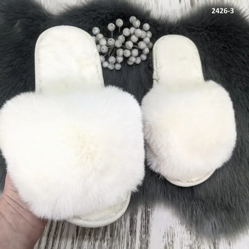 Відчуйте справжній затишок удома з м'якими хутряними капцями зі штучного песця. Ідеальне поєднання стилю, тепла та зручності для холодних днів.