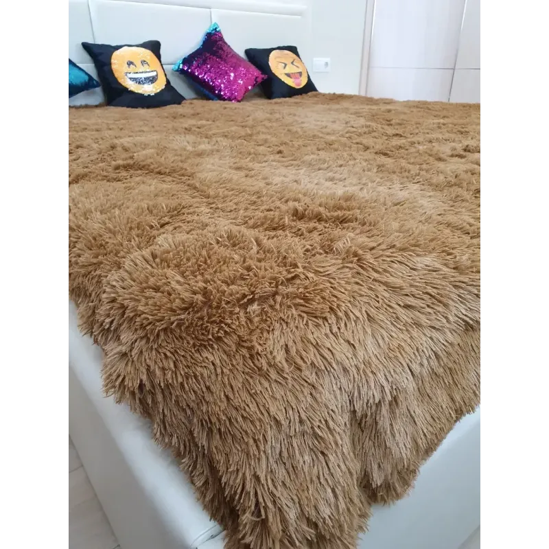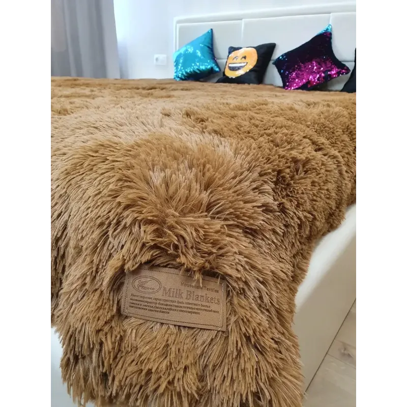 Теги: хутряний плед, плед-покривало, травичка, євро розмір, коричневий колір, домашній декор, теплий плед