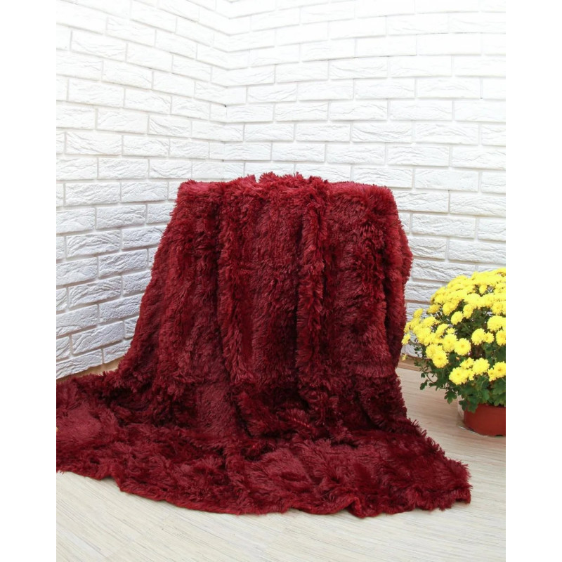 Хутряний плед-покривало травка Євро розміру 220/240 см. колір Бордовий