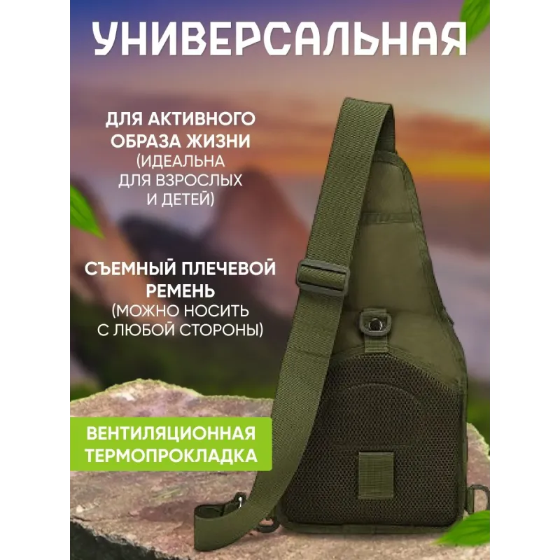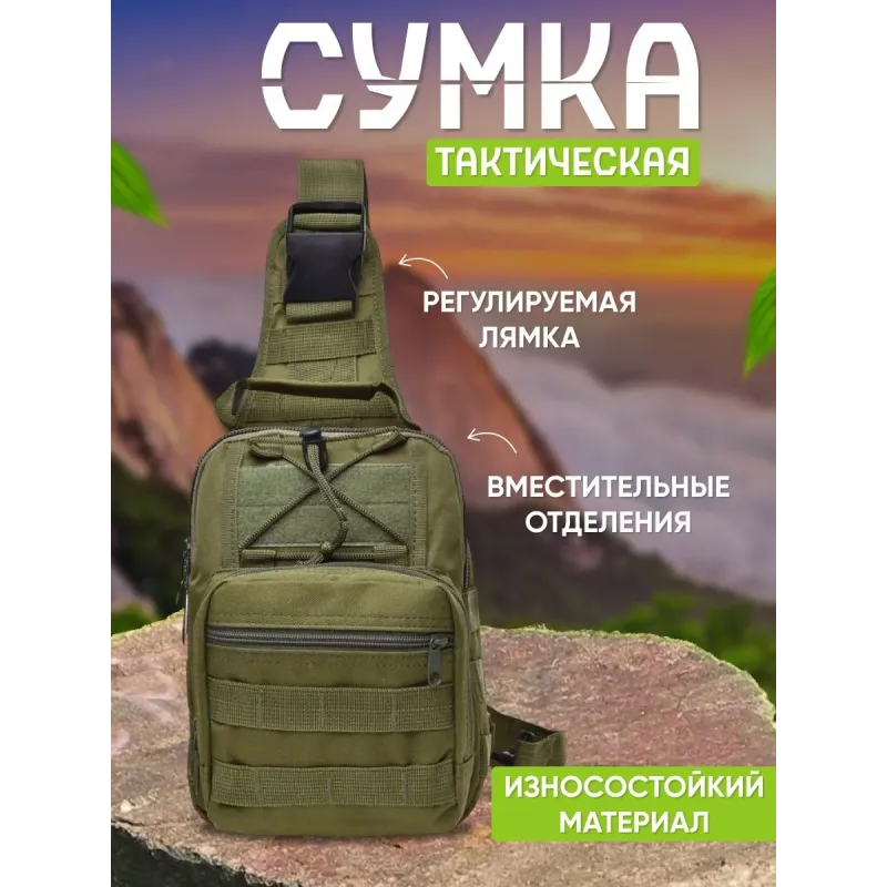 Качественная тактическая сумка, укрепленная мужская сумка рюкзак тактическая слинг. Цвет: хаки