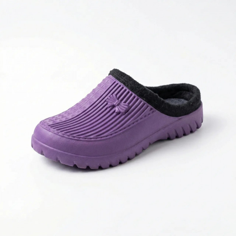 Забудьте про мокрі ноги та холод з нашими утепленими жіночими галошами з піни ЕВА. Ця модель у яскравому фіолетовому кольорі — незамінний помічник для мешканок приватних будинків, любительок дачного відпочинку та садівництва. Вони поєднують у собі 100% захист від вологи та комфорт теплого домашнього взуття. Зовнішня частина виготовлена з сучасного матеріалу ЕВА (піна), який відрізняється неймовірною легкістю, морозостійкістю та повною водонепроникністю. Всередині галоші оснащені теплою повстяною вставкою, яка надійно зігріває ноги навіть у холодну осінню чи зимову погоду. Закритий верх захищає від потрапляння бруду та води, а рельєфна підошва гарантує стійкість на слизьких поверхнях. Лаконічний дизайн з акуратним декором у вигляді бантика робить ці сабо не лише практичними, а й симпатичними. Вони легко миються, швидко сохнуть і не вимагають спеціального догляду. Характеристики: Матеріал верху: Піна ЕВА (EVA) — водонепроникна, легка Матеріал утеплювача: Текстиль (повстяна вставка/штучне хутро) Колір: Фіолетовий Тип: Закриті (галоші/сабо) Розміри: 36-41 Сезон: Осінь/Зима/Весна Країна виробник: Україна / Фабричний Китай