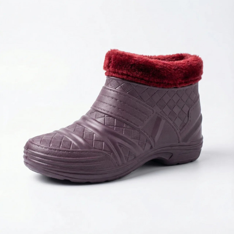 Гумова основа повністю захищає від вологи та бруду, натуральне хутро зберігає тепло навіть у сильний мороз, а короткий фасон дозволяє швидко взуватися. Ідеально для двору, дачі, ринку чи прогулянок з собакою.