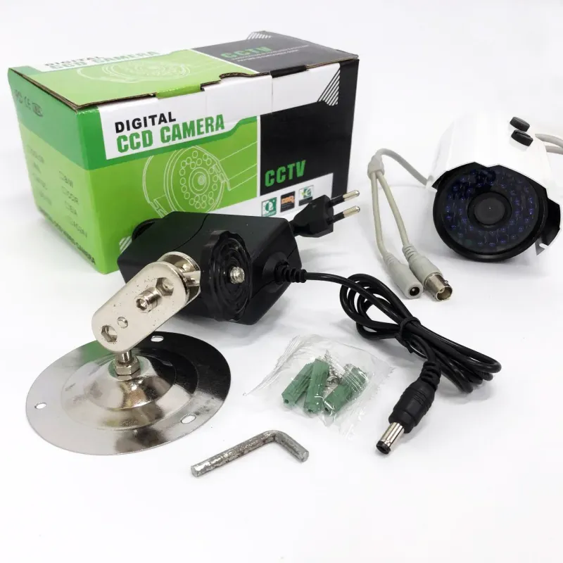Цветная камера крепится к любой поверхности и имеет двойной регулировочный поворотный шарнир для направления в нужную сторону.