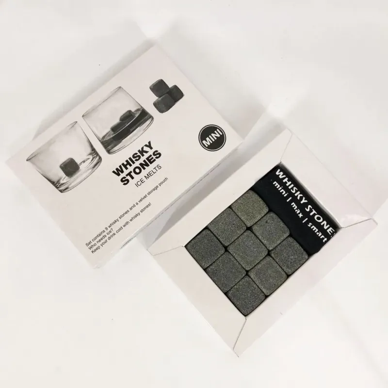 Камені для виски Whiskey Stones - це новий спосіб насолодитися вашим улюбленим напоєм. Виготовлені зі стеатиту, ці камені здатні охолодити вашу виску до ідеальної температури, не додаючи жодного смаку чи запаху.
