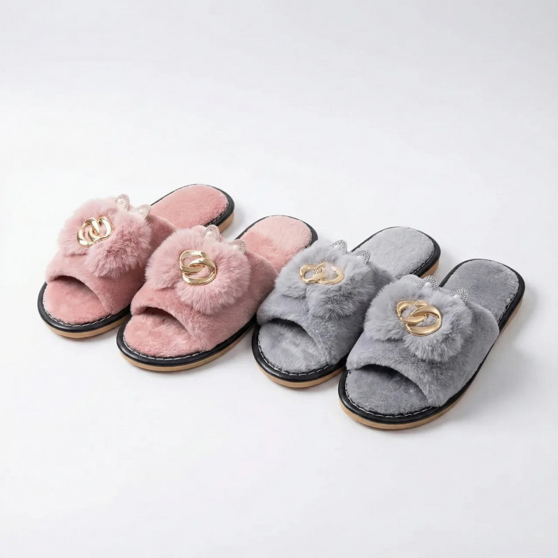 Пухнасті шльопанці з декором, виготовлені з високоякісних матеріалів, забезпечують зручність і теплоту您的 ніг. Доступні в рожевому та сірому кольорах, розміри 36-41.