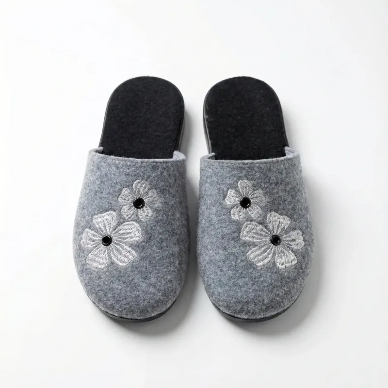 Жіночі кімнатні капці з вишивкою — тепло та краса для ваших ніжок! Створіть атмосферу справжнього затишку з цими чудовими домашніми капцями. Вони виконані з м'якого, приємного на дотик матеріалу, що нагадує повсть (войлок). Таке взуття відмінно зігріває в прохолодну пору року, дозволяючи шкірі дихати. Чому варто обрати цю модель: Дизайн: Класичний сірий колір доповнений ніжною вишивкою у вигляді білих квітів. Виглядає дуже охайно та по-домашньому мило. Комфорт: Закритий носок добре зберігає тепло. Зручна колодка дозволяє ногам відпочивати після довгого робочого дня. Практичність: Темна устілка не мажеться, а підошва забезпечує комфортну ходьбу по будь-якому підлоговому покриттю (паркет, плитка, ламінат). Ідеальний подарунок: Такі капці стануть чудовим проявом турботи про маму, бабусю, сестру чи подругу. Характеристики: Тип: Кімнатні капці / Тапочки. Матеріал верху: Текстиль (під повсть). Декор: Вишивка (квіти). Колір: Сірий. Доступні розміри: 36, 37, 38, 39, 40, 41. 🧦 Замовляйте теплі капці з квітами прямо зараз — подаруйте своїм ніжкам комфорт!