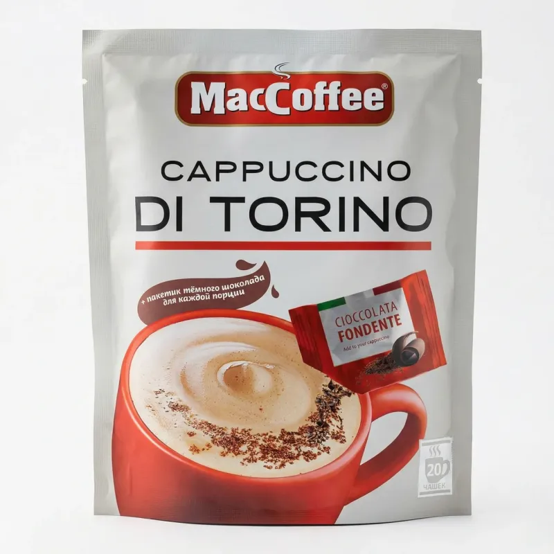 Капучино MacCoffee Di Torino з темним шоколадом 20 стіків (упаковка) | Італійський рецепт, Густа пінка