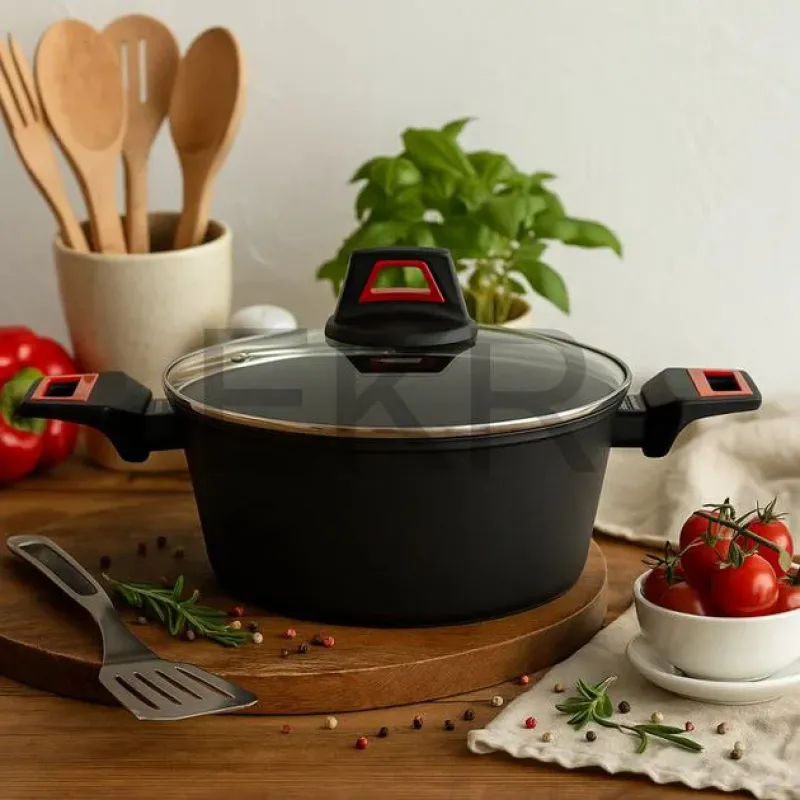 Кастрюля (казан) з термоіндикатором та скляною кришкою, кований алюміній, 2 л (20x9 см) Edenberg EB-13093 — для приготування супів, каш, тушкованих страв та варіння на весь сімейний стіл. Якісна нержавіюча сталь або антипригарне покриття забезпечують гігієнічність та довговічність. Скляна кришка дозволяє стежити за процесом приготування без відкривання. Зручні ручки-прихватки не нагріваються. Підходить для всіх видів плит включно з індукційними.