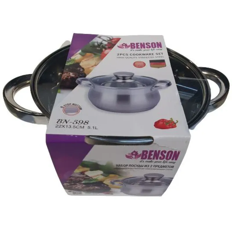 Каструля з кришкою BN-598 об'ємом 5,1 літра — це інвестиція в комфорт та якість вашого повсякденного життя. Вона стане надійним помічником у приготуванні смачних та корисних страв для всієї родини. Завдяки продуманій конструкції та якісним матеріалам, ця каструля прослужить вам довгі роки, зберігаючи свої функціональні властивості та привабливий зовнішній вигляд. Не відкладайте покупку — замовте каструлю BN-598 прямо зараз та насолоджуйтесь процесом приготування улюблених страв! Швидка доставка по всій Україні, вигідні умови оплати та гарантія якості від виробника. Зробіть свою кухню ще зручнішою та функціональнішою разом з каструлею BN-598!