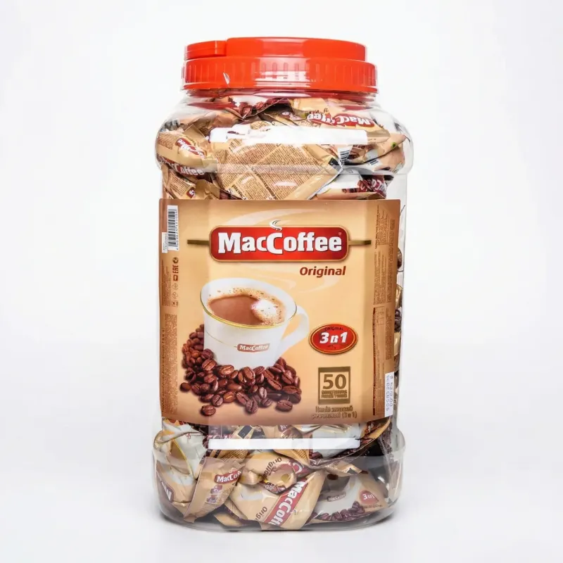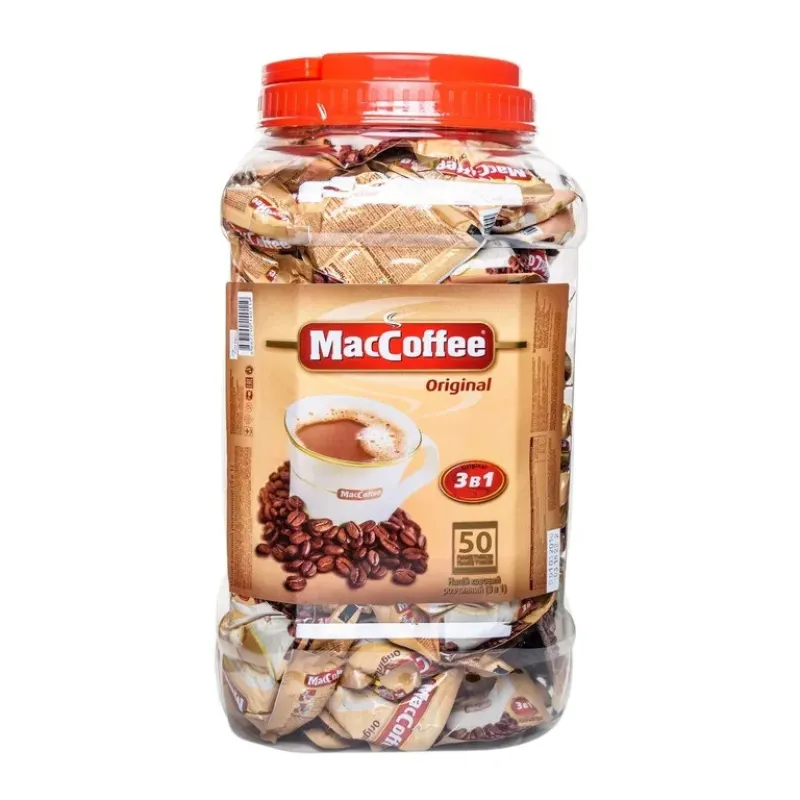 Кава 3в1 MacCoffee The Original 50 шт (банка) | Кавовий напій у стіках, Середня упаковка