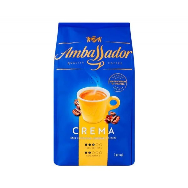 Теги: кава в зернах, Ambassador Crema, кава для кавомашини, зернова кава 1 кг, кава з густою кремою, італійська кава, кава для еспресо