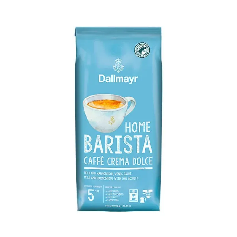 Dallmayr Home Barista Caffe Crema Dolce — це німецька якість у кожній чашці. Зерна середнього обсмаження створюють ніжний напій з карамельними нотками та щільною кремовою пінкою, як у професійній кав'ярні.