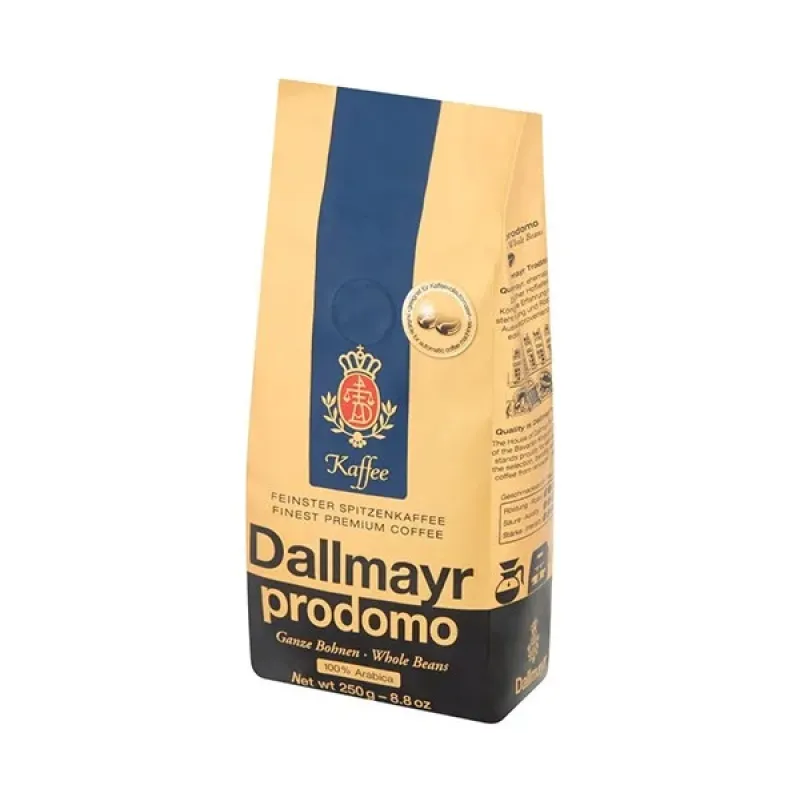 Відкрийте для себе легендарну каву Dallmayr Prodomo в зернах — еталон німецької якості з 1700 року. Ідеально збалансований смак, м'яка кислинка та насичений аромат у зручній упаковці 250 г для домашнього використання.