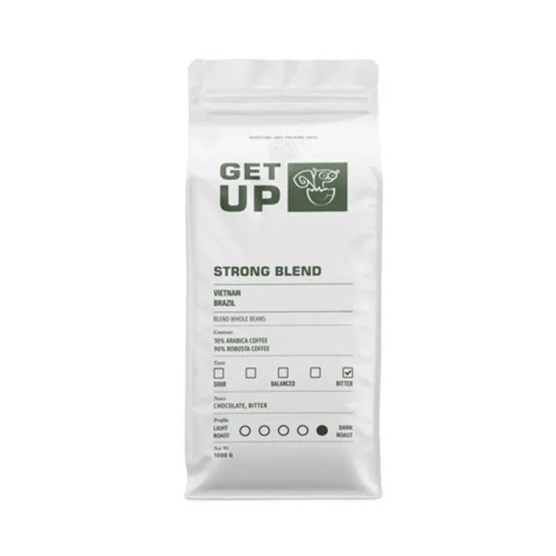 GetUp Strong Blend — це кава для тих, хто не звик до компромісів. Насичений смак, щільне тіло та міцність, яка розбудить навіть у найпохмуріший ранок. Упаковка 1 кг забезпечить вас якісною кавою надовго.