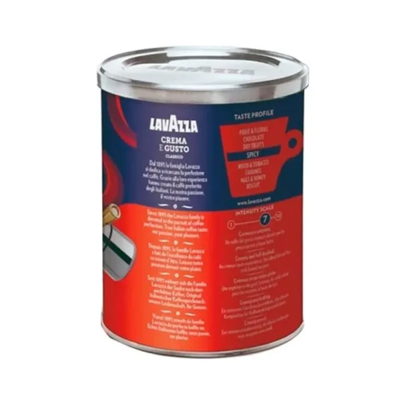 Кава Lavazza Crema e Gusto мелена, 250 г (жерстяна банка) – це насичений італійський бленд, створений для тих, хто любить міцний, збалансований та глибокий смак. До складу входить суміш арабіки та робусти, яка надає напою насичений аромат із нотками шоколаду, спецій і легкої карамелі. Середнє обсмажування розкриває щільну текстуру та глибокий смак, а тонкі шоколадні відтінки роблять цю каву ідеальною для приготування еспресо, капучино, лате та мокко. Упакована в герметичну жерстяну банку, що зберігає свіжість та аромат кавових зерен. ✅ Основні характеристики: Склад: Суміш арабіки та робусти Обсмажування: Середнє Смак: Глибокий, насичений, збалансований Аромат: Яскравий, із нотками шоколаду та спецій Післясмак: Приємна карамельна солодкість Кислотність: Низька Фасування: Жерстяна банка 250 г Країна виробництва: Італія Ця кава підходить для турки, гейзерної кавоварки, френч-преса та кавомашини.