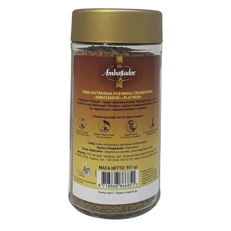 Теги: кава розчинна, Ambassador Platinum, сублімована кава, преміум кава, німецька кава, кава в скляній банці, кава Ambassador