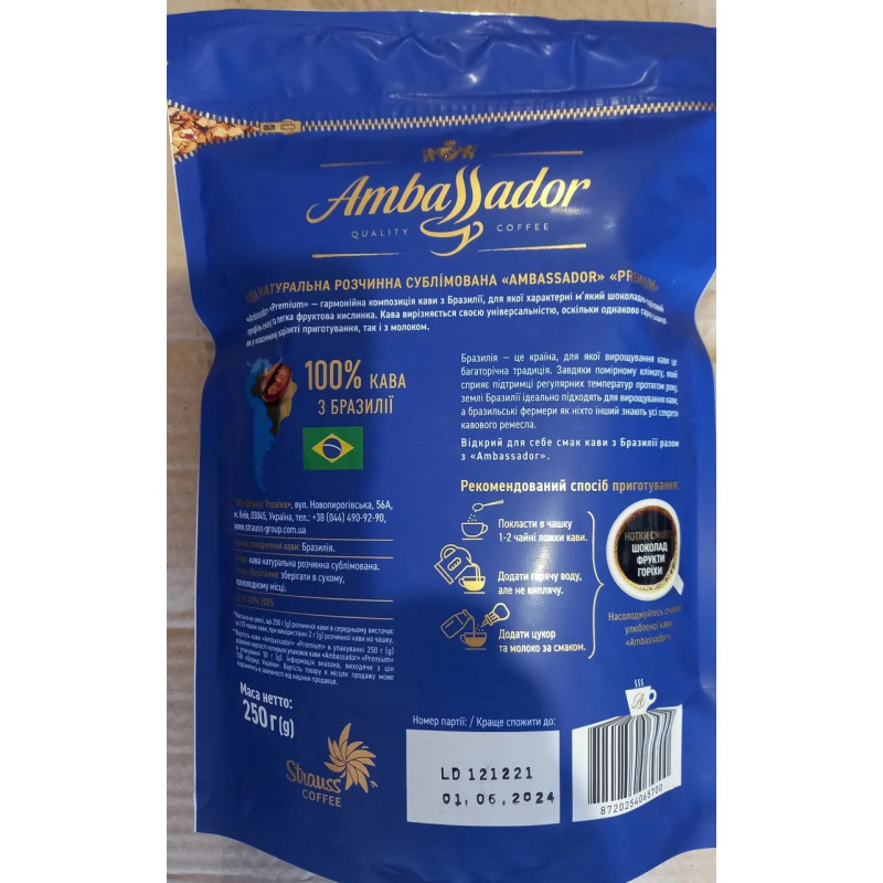 Замовте Ambassador Premium 250 г прямо зараз і насолоджуйтесь преміальною кавою кожного дня!