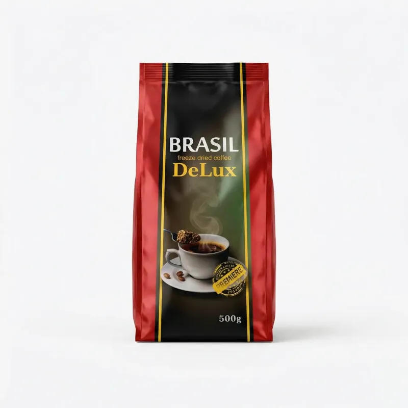 Кава розчинна Brasil DeLux 500 г (м'яка упаковка) | Сублімована, Бразильська, Premiere Quality
