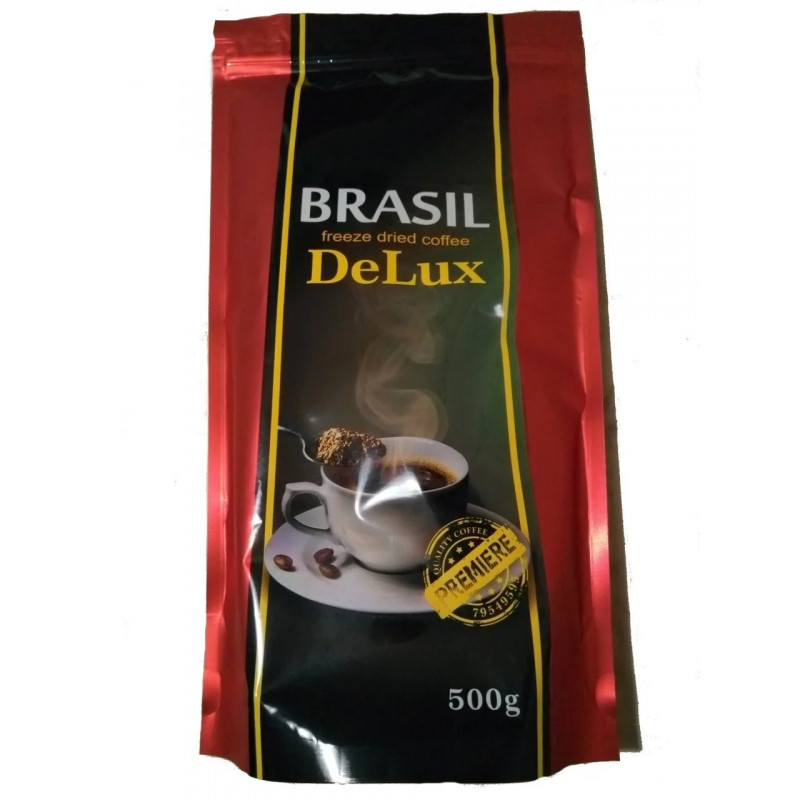 Кава розчинна Brasil DeLux 500 г (м'яка упаковка) | Сублімована, Бразильська, Premiere Quality