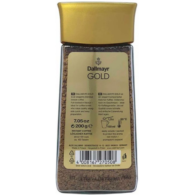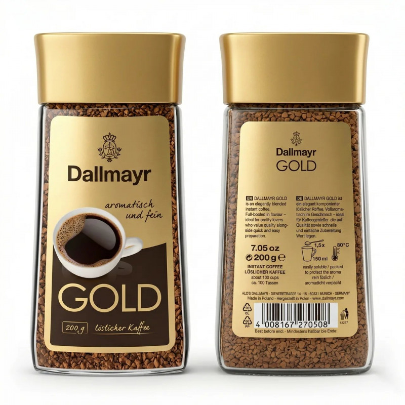 🛒 Шукаєте надійний товар? Ви можете купити Кава розчинна Dallmayr Gold 200 г (скло) | Німецька сублімована кава Даллмаєр Голд Оригінал в нашому інтернет-магазині Shtyrman. Гарантія якості та швидка доставка по всій Україні!