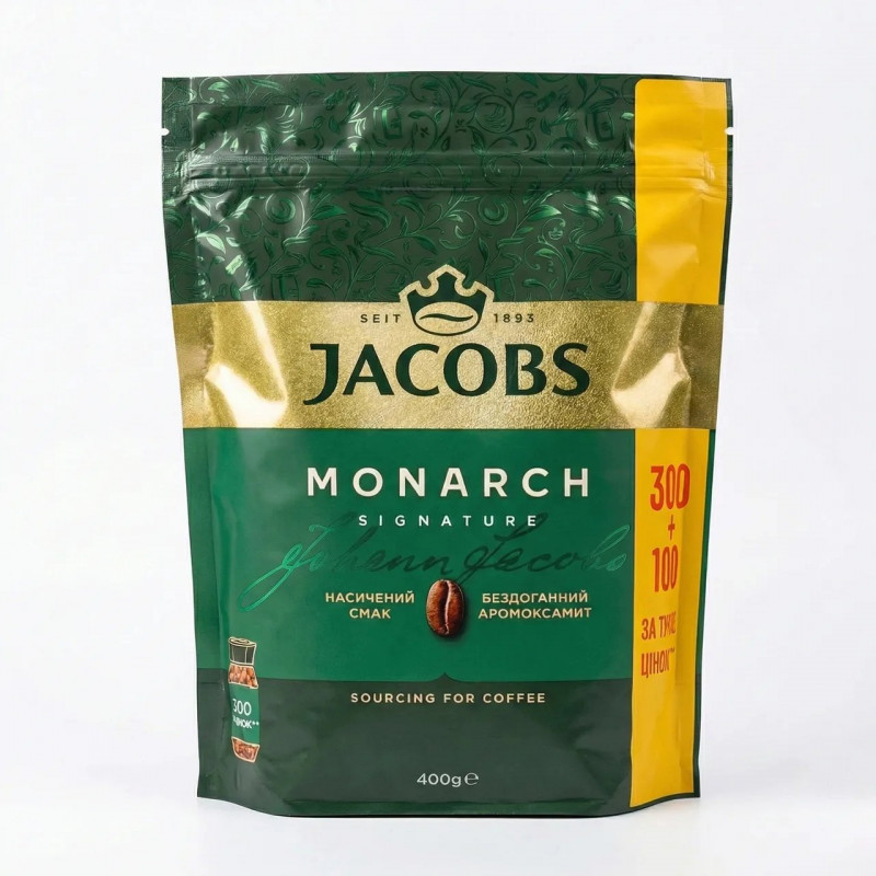 Кава розчинна Jacobs Monarch Signature 400 г (300+100) | Акція, Вигідна пропозиція, М'яка упаковка