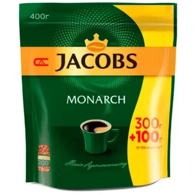 Кава розчинна Jacobs Monarch 400 г (Економ-пакет 300+100 г) | Сублімована кава Якобз Монарх Оригінал