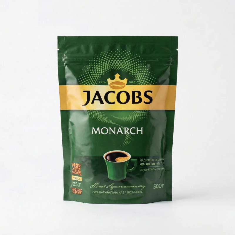 Кава розчинна Jacobs Monarch 500 г (м'яка упаковка) | Економ-пакет, 250 чашок, Оригінал