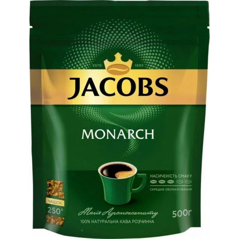 Обирайте каву розчинну Jacobs Monarch 500 г і насолоджуйтесь преміальним смаком щодня! Це ідеальний вибір для тих, хто цінує якість, зручність та економію. Замовляйте зараз з доставкою по всій Україні та отримуйте задоволення від кожної чашки улюбленого напою. Jacobs Monarch — кава, яка надихає на нові звершення!
